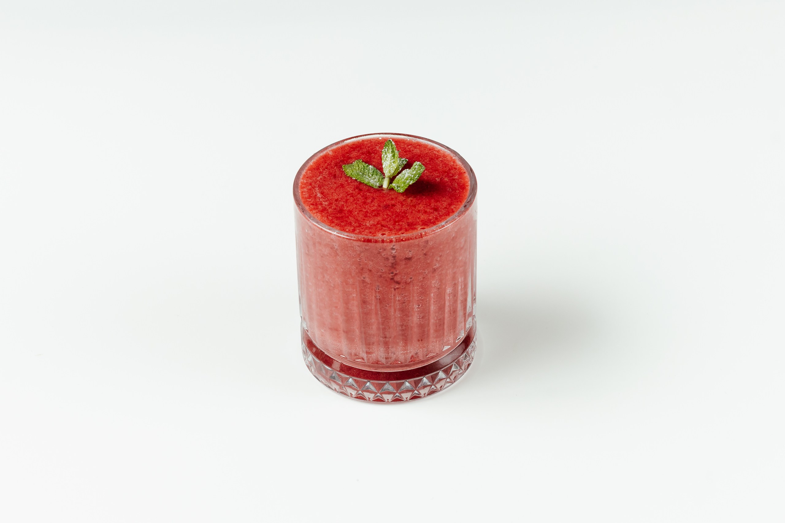 Крем-чиз, клубника, голубика, малиновый топпинг, лепестки миндаля, мята